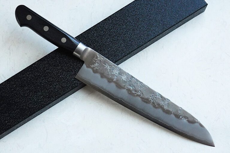 切れ味抜群、青紙スーパー鋼の黒肌牛刀包丁・刃渡り21cm 禅鳳作【品切れ】