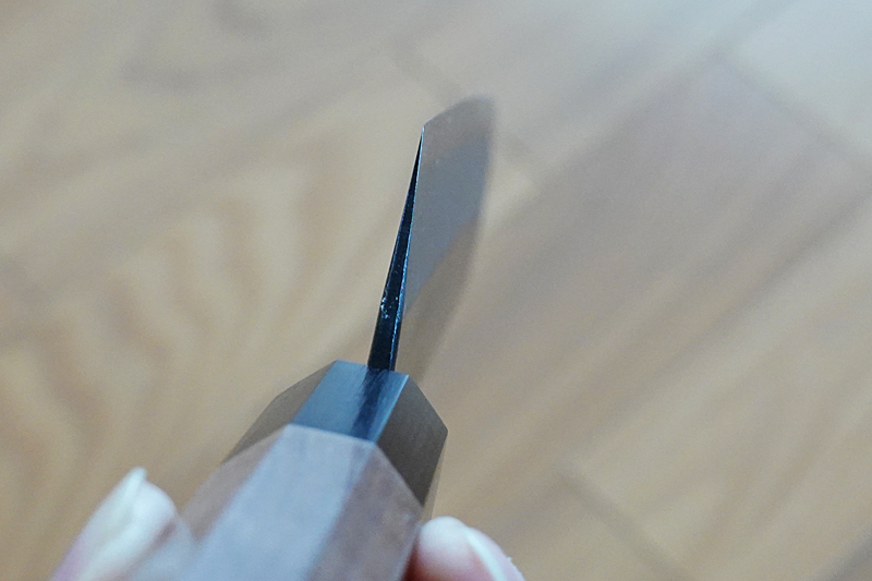 また、この包丁は中子と呼ばれる柄の中に入る部分もしっかりしていて見えない部分ですがこの中子が太くしっかりしているとバランスのとれた良い包丁となります。